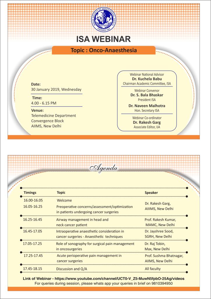 ISA Webinar - ISA NATIONAL WEBINAR ON LIVING DONOR LIVER TRANSPLANTATION- ANAESTHESIOLOGISTS PERSPECTIVE, 10/04/21